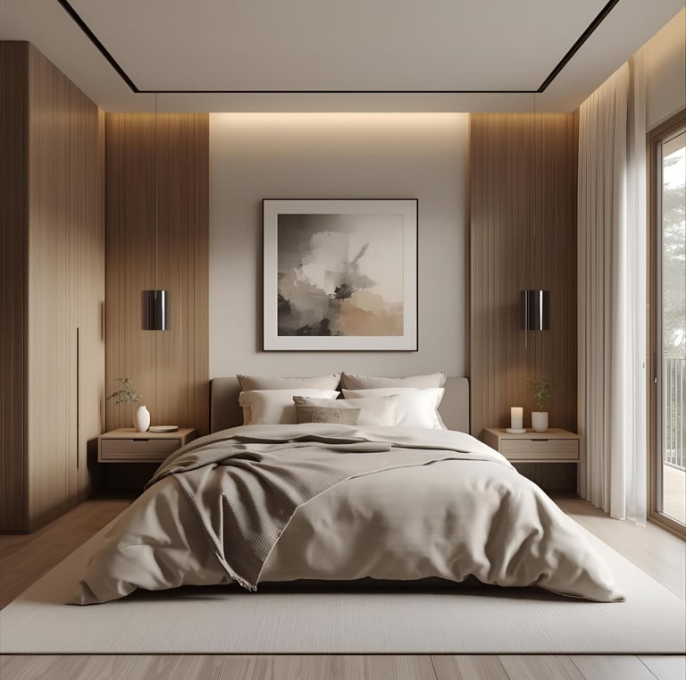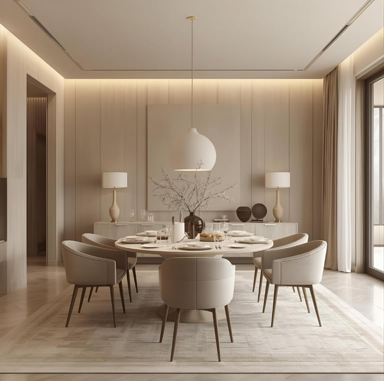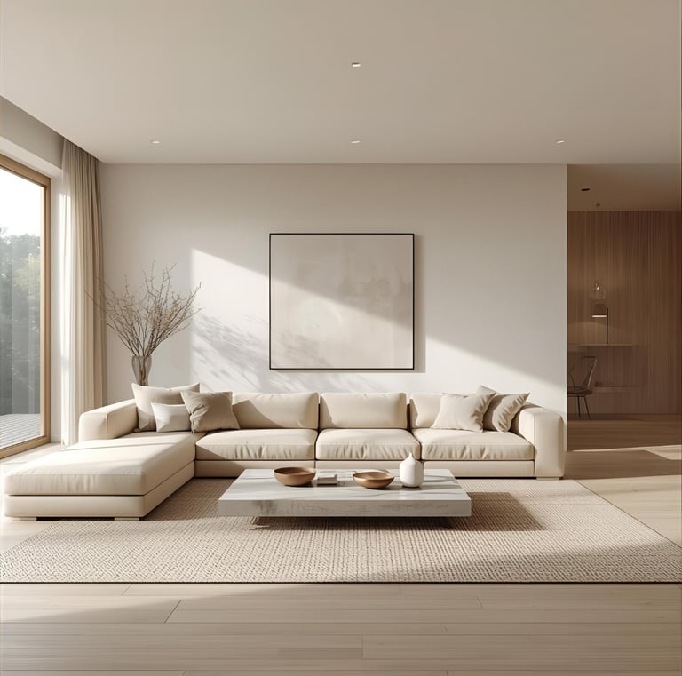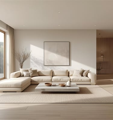 We craft minimalist interiors using warm neutrals to bring calm and elegance into your living space.