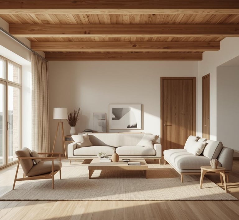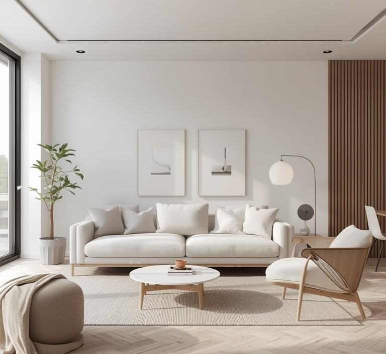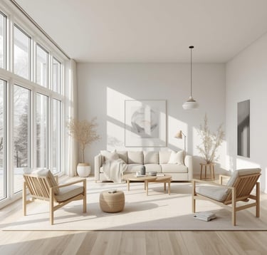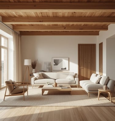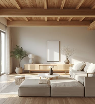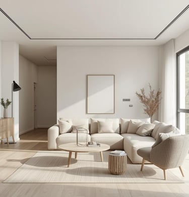 A calming, stylish living room designed with warm neutrals, soft textures, and modern simplicity. Explore ideas for sofas, rugs, lighting, décor, and layouts that create a cozy and inviting space